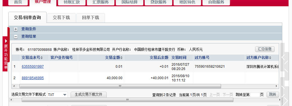 开户行:中国银行桂林市建干路支行(网上客户一般找不到这支行,需打款到 中国银行桂林分行营业部)